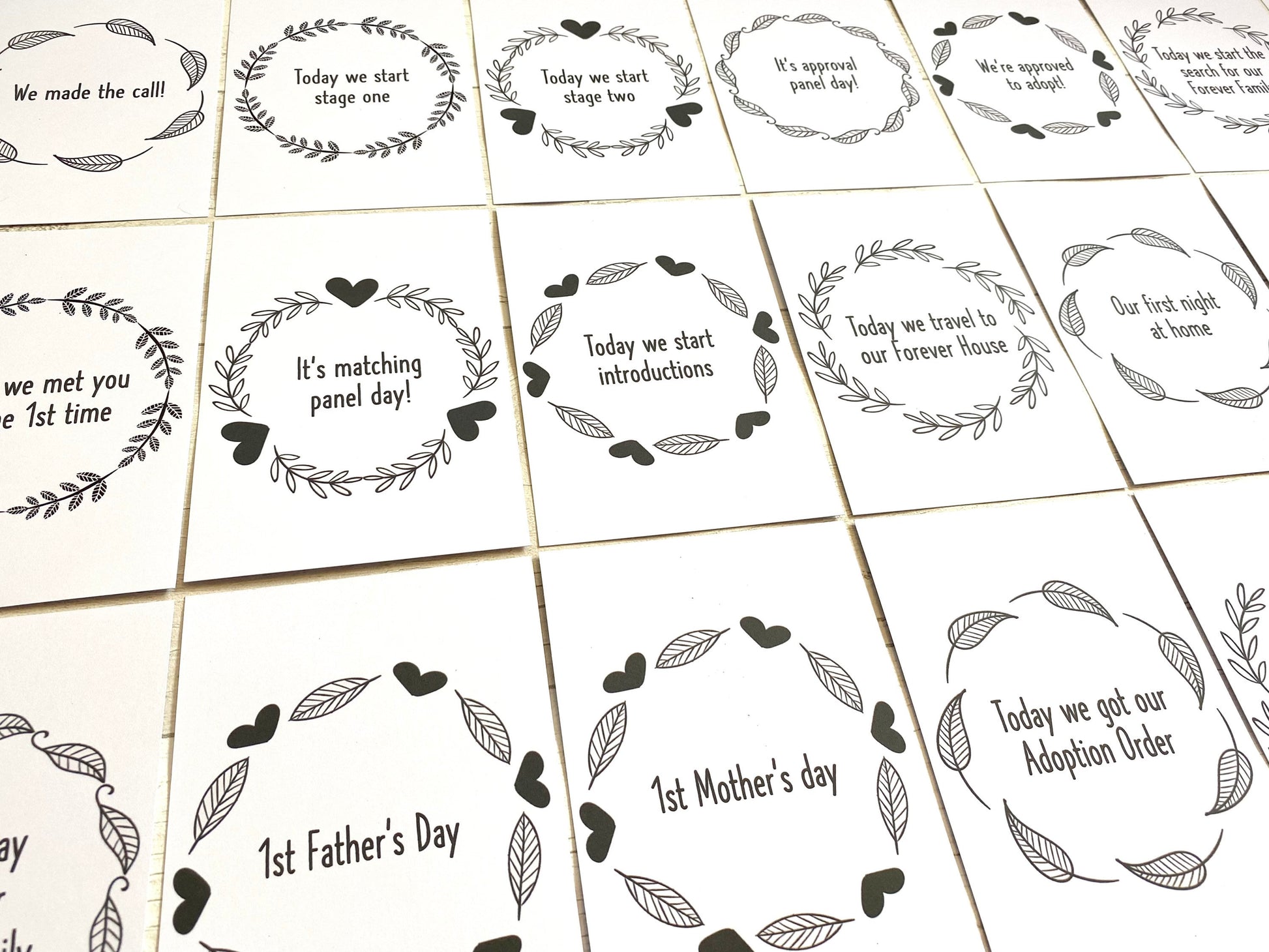 Our Black and White Adoption Milestones Cards are perfect for helping to document your adoption journey.