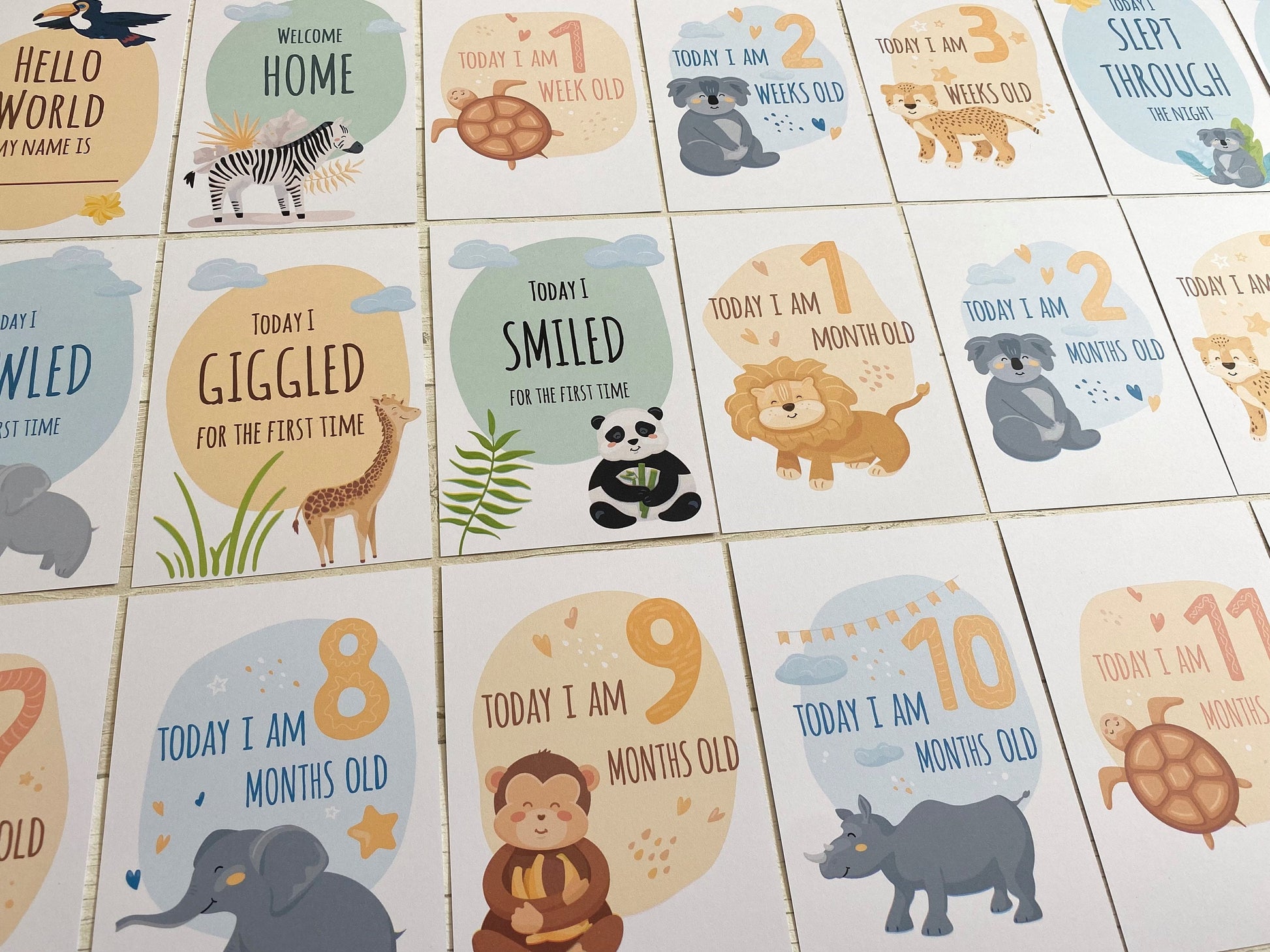 Safari Baby Milestone Cards for New Parents and Baby Shower Keepsake Gifts