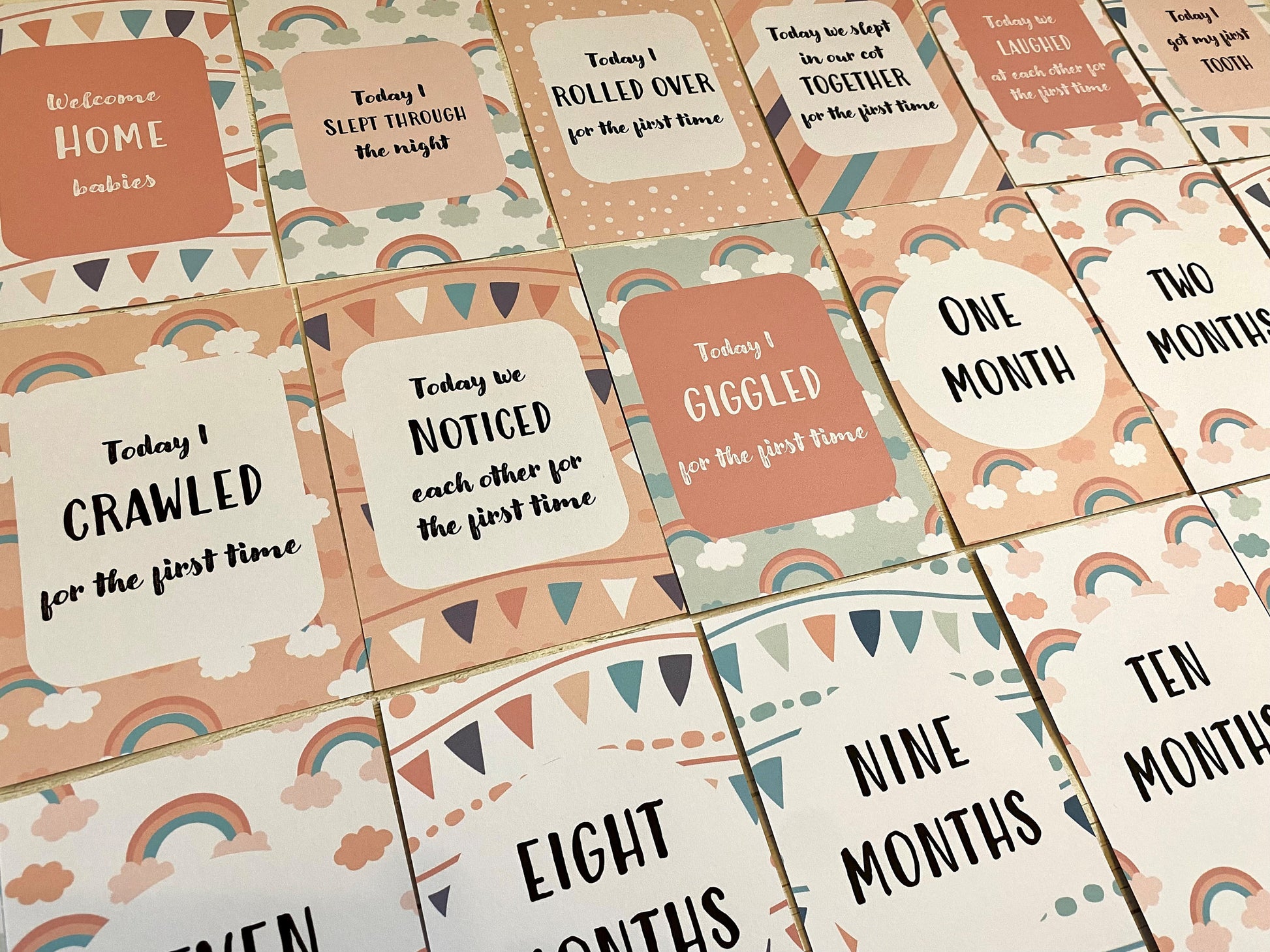 Twin Baby Milestone Cards - Gender Neutral Pregnancy Gift for Parents and Baby Showers